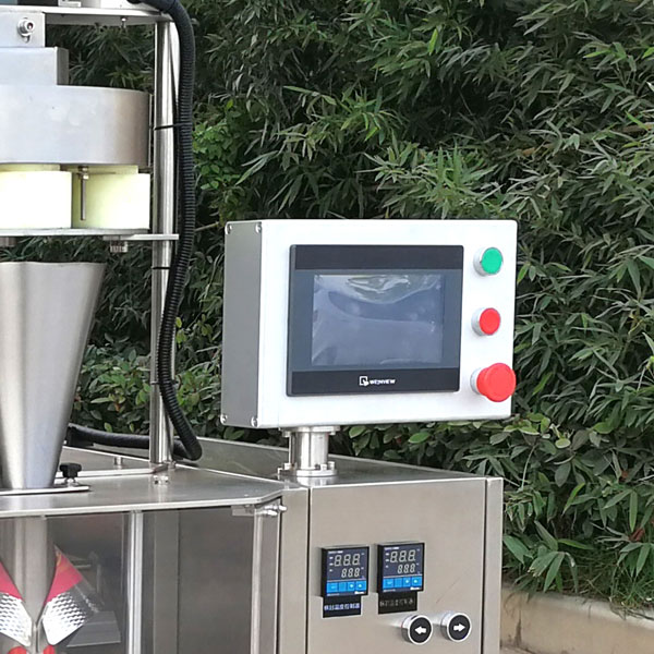5、袋裝沖劑包裝設(shè)備采用觸摸屏和穩(wěn)定可靠的PLC控制,操作直觀簡單,制袋、計量、充填、封合、打碼、切袋一次性完成,運行非常穩(wěn)定;